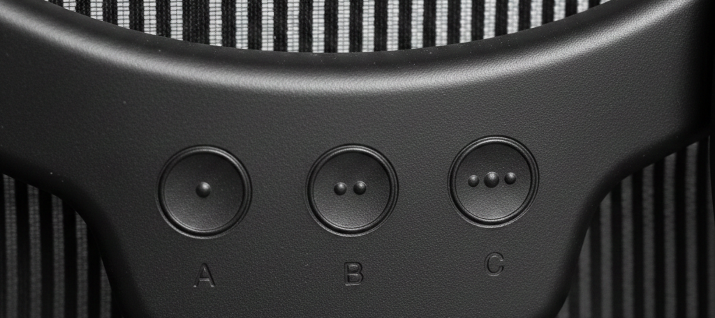 The Aeron comes in three sizes: A, B, and C. Getting this right is the single biggest factor in comfort and posture support.